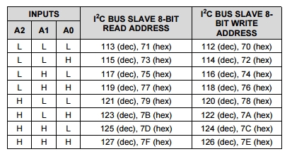 L' indirizzamento sul bus I2C è definito, come solito, da alcuni bit fissi
